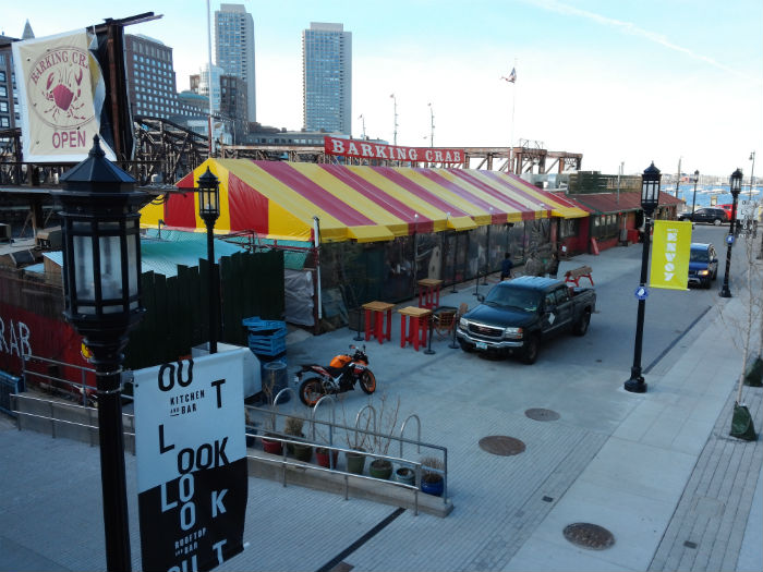 El paseo ideal puede comenzar en la South Station, la estación sureña de metro y tren, cuya rica arquitectura ya merece una visita por sí sola. Dejando atrás los altos y modernos edificios del Distrito Financiero nos acercamos al agua. En medio del puente podemos rendir visita al Museo del Tea Party, con sus barcos de época, que gira en torno a los sucesos que culminaron en la Revolución de las Trece colonias fundadoras de los Estados Unidos como nación. Ya en la ribera opuesta, está el gigantesco Museo de los Niños y, siguiendo pegados al agua, tras el siguiente puente, nos topamos con un cangrejo que ladra, The Barking Crab, el restaurante más popular de la ciudad, destartalado y sucio por fuera pero rústico, marinero, colorista y festivo en su interior, siempre repleto de gente que se acerca a probar la típica langosta y otros platos de la zona en un ambiente de diversión y mesas compartidas.