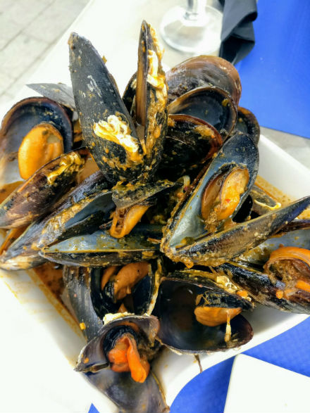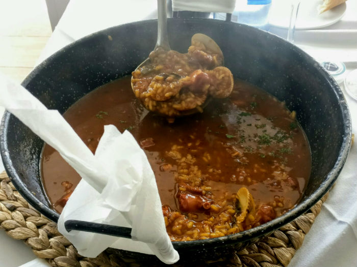 En Las Negras elegimos el restaurante Cala Aurora, pues tiene una terraza muy apetecible y buenas vistas. Pedimos comida muy normal, que estaba bien buena, y los arroces que vimos tenían muy buena pinta. ¡Yo me quité el mono de mejillones!