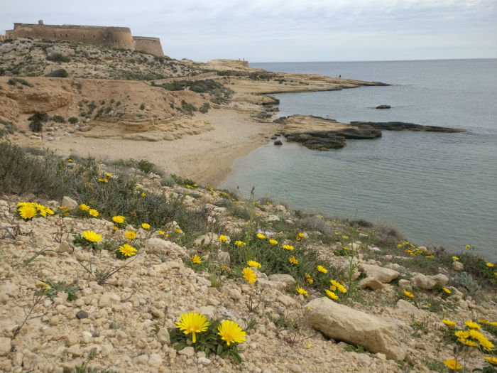 Las playas de la Isleta del Moro parecen normales en un primer momento, pero preciosas cuando se toma perspectiva. Preciosas cuando las flores silvestres son las protagonistas de las fotos donde el mar de fondo pinta un paisaje único. Preciosas cuando a golpe de pájaro somos conscientes de los grandes peñones que tiene a su alrededor. El pueblo es tranquilo y las mujeres utilizan el lavadero público, como antaño, y tienden la ropa también al aire libre. El tiempo pasa lento, pero no tenemos demasiado, así que continuamos.