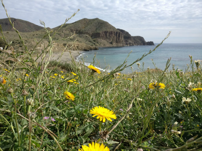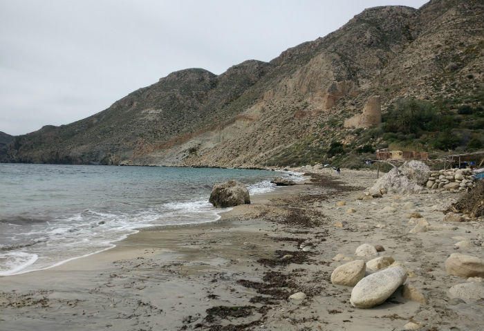 Lo mejor de estas playas es que no hay dos iguales. Teníamos muchas expectativas puestas en la Cala de San Pedro, a la cual zarpan barcos desde Las Negras por un módico precio de diez euros. Pero nosotros quisimos hacer la ruta, de unos cuatro kilómetros, para acceder. Disfruté más de la senda que de la playa, abarrotada de algas, por lo que os la recomiendo encarecidamente. Obligatoria si no vais en verano y os gusta pasear. Como paseo es bastante sencillo, aunque hay pendientes en algunos tramos. Sale de un camino al final del pueblo de Las Negras. Las vistas tanto hacia atrás cuando se está subiendo, como a mar abierto en mitad del camino como finalmente bajando al reducto hippie que es San Pedro son maravillosas.
