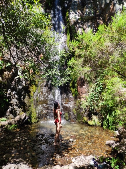 Lo mejor es que tras una fuerte subida inicial, nos adentraremos pronto en pleno bosque. Después seguiremos subiendo y al salir a campo abierto, divisaremos un paisaje no menos genial. Así se accede al mirador de la Gualta, sin duda el de mejores vistas de todo el trayecto. Y ya solo queda bajar, si bien por momentos es aún más complicado porque tienes que sujetarte a cuerdas o escalar un poco para acceder a algunos puntos. Otro de los momentos clave fue el que nos llevó a la Cascada de La Gualta, preciosa cola de caballo con diferentes creaciones y escalas en el terreno. Era verano, así que una servidora se metió y dio un fugaz baño en las aguas gélidas del lugar. La bajada nos siguió inundando de imágenes preciosas en los 9 kilómetros de ruta circular.