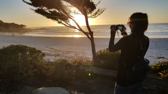 A la tarde, sin embargo, fuimos a la zona de Monterrey, donde dormimos. Visitamos en primer lugar Carmel by the Sea un pueblo donde los más pudientes tienen sus mansiones, preciosas y tradicionales en su práctica totalidad, y con la mejor playa que vimos en el viaje. ¡Qué alegría pasear por su arena, blanca y fina, con el rugir de las olas de fondo! Curiosidad: Clint Eastwood fue su alcalde.