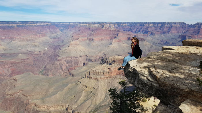 Desde Las Vegas al Gran Cañón hay cuatro horas. Aunque nuestro encuentro con la Ruta 66 no fue muy esperanzador, aún tuvimos esperanzas de coger algún tramo, que pronto se acababa…así que desistimos. Llegamos a una de las joyas del viaje antes de comer, con lo que tan solo nos acercamos a uno de los miradores que están cerca del Centro de Visitantes. No hace falta mucho para encontrarte con la vista de este lugar, uno de los más espectaculares que mis ojos han tenido el placer de ver en toda su vida.