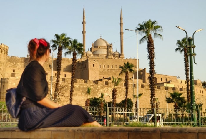 La Ciudadela de Saladino, que fue uno de los líderes más importantes del país, es una fortificación defensiva que se sitúa sobre un promontorio en la ciudad. Dentro de ella se puede visitar la imponente Mezquita de Muhammad Alí y también otros puntos de interés como el Pozo de Yusuf o museos. Nosotros llegamos tarde y solo pudimos contemplar la zona exteriormente, que también merece la pena. Nos paramos en una rotonda –donde están las mezquitas de Al Rifa’i y la del Sultán Hassan, preciosas también por fuera- y allí nuestro amigo ‘Aladino’ nos hizo fotos del lugar.