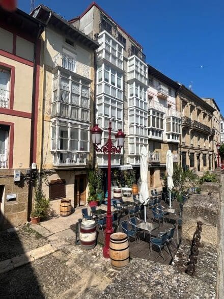 La ciudad está en la zona alta, pero no se tarda mucho. Todo allí es bastante “abarcable”. De hecho, pronto se llega a la plaza de la Paz, la más céntrica y donde se encuentra el Ayuntamiento. Allí el pueblo exhibe con orgullo su mayor atractivo: Haro, capital del Rioja. Además, cuando yo fui y quizás debido al calor, apenas había gente por las calles. Fui hacia un lado, hacia la iglesia parroquial de Santo Tomás Apóstol; al otro, a una zona más moderna de elegantes balcones blancos y bastantes bares y restaurantes.