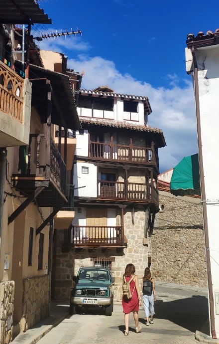 “La adaptación del caserío a la pendiente provoca un sistema de manzanas de viviendas alargadas y escalonadas -en cascada-”, informa uno de los paneles del pueblo, otro detalle que me gustó de este rincón de Ávila. Las callejuelas que se forman en este entramado de curiosas viviendas son súper chulas y algunos balcones de madera, ¡una obra de arte! Algo que no hubiera esperado, la verdad, para este pueblo, de poco menos de 500 habitantes en 2019. ¡Qué maravillas esconde nuestro entorno rural! Y cuánto nos queda por conocer. Desde luego…