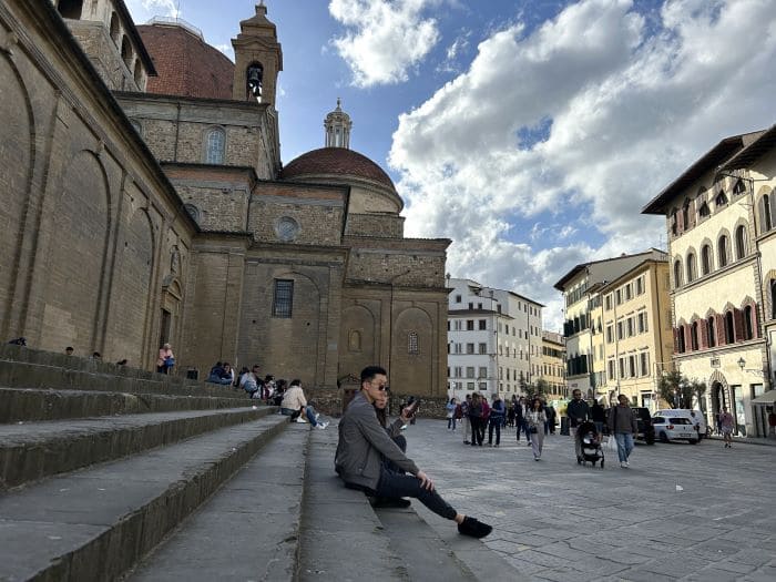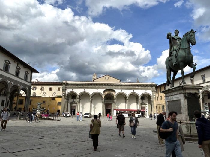 Después volvimos al cauce del centro de nuevo por la por la Piazza del Duomo, tomando la calle Borgo San Lorenzo para llegar a la plaza homónima. La Piazza di San Lorenzo fue uno de los puntos que más disfruté de la ciudad, por su belleza, por ser parada del primer día para la siesta de Luca y porque por su amplio espacio fue también escenario de varias actuaciones callejeras que disfrutamos muchísimo.