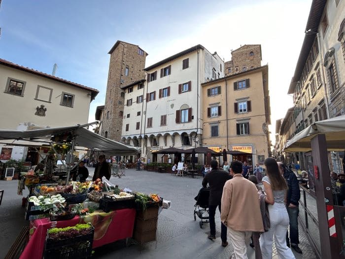 De nuevo, volvimos al triángulo dorado del centro, para tomar en esta ocasión otra dirección: por la Via del Corso, muy interesante en sí misma al albergar varios edificios históricos de alta belleza, llegamos a otro rincón precioso que hizo de nuevo incentivar nuestra emoción: Piazza di S. Pier Maggiore. Con puestos callejeros, tiendas de toda la vida y algunos bares y restaurantes, esta plaza tiene el gusto de las cosas pequeñas. Callejeando un poco más, llegamos también de nuevo a la Piazza della Signoria descubriendo otras pequeñas joyas, como calles empedradas como Condotta o la Piazza di San Firenze.