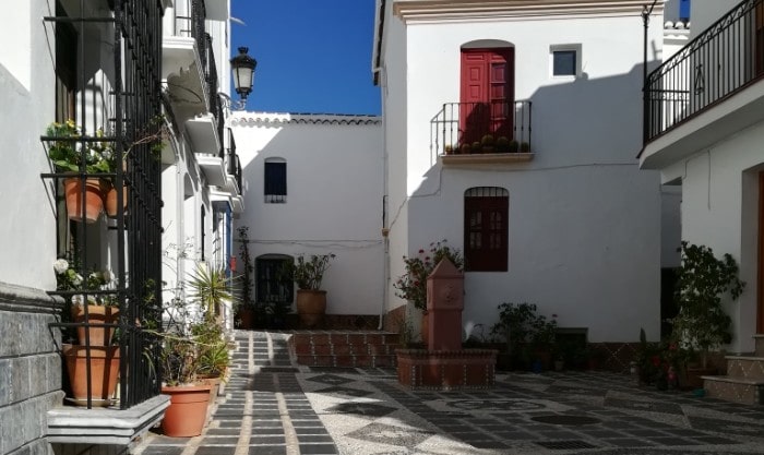 Con una orografía accidentada, que aún conserva viejos senderos por los que se comerciaba con los pueblos granadinos del otro lado de la sierra, se distinguen en el casco urbano varios barrios muy distintos que van del monte a la vega entre barrancos y arroyos. Eso hace que abunden los recodos, cuestas, callejas estrechas, placitas escondidas y casas colgadas de altos acantilados rocosos. Es fácil perderse entre sus casas encaladas, de patios andaluces y rejerías de hierro, pateando los suelos de sus angostas calles, de piedra y artísticos diseños, pero siempre acabaremos convergiendo en la plaza de Almijara, centro urbano y punto de encuentro principal, de terrazas y fuente.