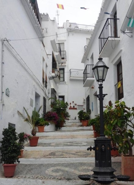 Saliendo de Nerja hacia la cercana sierra norteña de Almijara, vamos ganando altura hasta alcanzar Frigiliana, pequeña población asentada a los pies de un altozano rocoso y hoy considerada como uno de los pueblos más bonitos de España. Poblada desde la prehistoria y antiguo asentamiento de fenicios y romanos, fue la presencia árabe medieval la que marcó su impronta y la conformación de su aspecto actual, debidamente actualizado. Los primeros musulmanes llegados a la península se asentaron aquí durante siglos y dejaron su huella para siempre en lengua, costumbres, economía y urbanismo, herencia que se deja notar especialmente en los sistemas de regadío y en el trazado general de sus calles, plazas, casas y jardines.