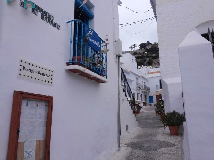 Es la única manera de conocer el Barrio Mudéjar y la Judería, que se suceden como dos perlas en una en la zona alta del caserío, ofreciendo rincones únicos y espectaculares miradores sobre los alrededores de monte y vega y transportando al visitante a los siglos dorados de Al-Ándalus y a los más difíciles de la resistencia morisca. En la parte baja, destacan los edificios del Ayuntamiento y de la iglesia parroquial, la blasonada Fuente Vieja y la placita con el emblema de las tres culturas: judía, árabe y cristiana; en la alta, una docena de murales de azulejo con colorido diseño y leyenda explicativa adornan algunas calles a modo de via dolorosa musulmana, pues en ellos se recuerda la histórica tragedia de los últimos moriscos del barrio, los cuales se unieron al levantamiento de las Alpujarras y fueron vencidos y exterminados en la dura batalla de los riscos circundantes. Un interesante paseo, en fin, por una de las ciudadelas islámicas medievales mejor conservadas y más pulcramente atendidas. Todo un goce para los sentidos, para conocerlo de día y vivirlo de noche.