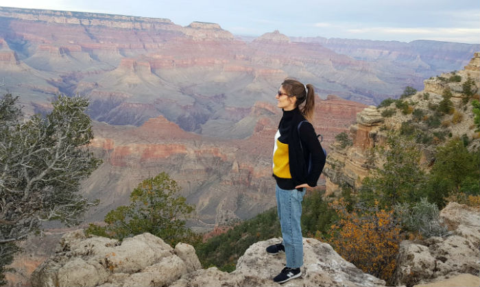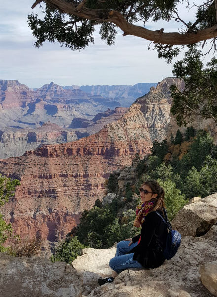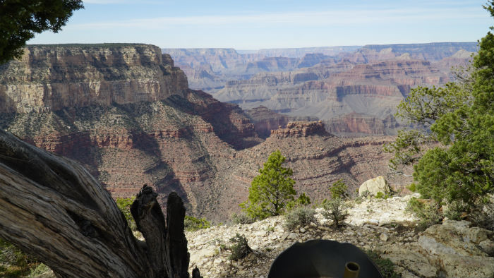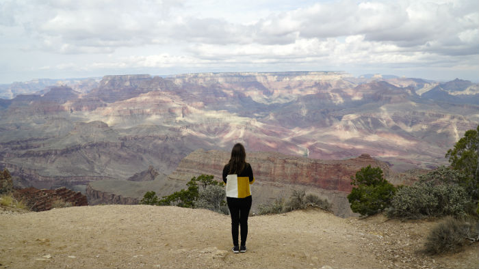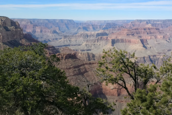 Para el primer día y sin haber planificado demasiado el viaje, simplemente nos dejamos llevar. Como habíamos llegado a Mather Point de forma casi natural, de ahí partimos andando hacia el oeste, simplemente con el deseo de dejar que el paisaje y sus pequeños cambios -de formación, color…- nos sorprendieran. Con solo verlo ya teníamos más que suficiente en realidad. Así llegamos, tras múltiples paradas y caras de sorpresa, hasta Yavapai Point, desde donde además de unas vistas geniales, hay un museo geológico en el que conocer la formación de este ‘accidente natural’ tras miles y miles de años.