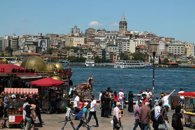 El siguiente barrio es el de Gálata, cuyo nombre parece remitir a antiguos asentamientos celtas y que fue importante ciudadela fortificada como colonia genovesa durante la Baja Edad Media. De esta época data la actual Torre de Gálata, levantada como estratégico punto de vigilancia, hoy concurrido mirador urbano; el mismo nombre que pasea por todo el mundo otro de los grandes equipos de la ciudad, el de los leones rojigualdos del Galatasaray SK, que aquí cerca tiene su sede.