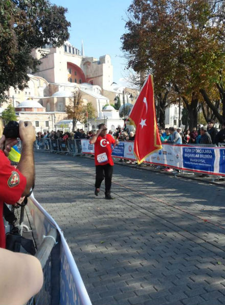 Alegría, medalla, fotos, recuperación y ducha. La Fuente Germánica, la Columna Serpentina y el Obelisco de Teodosio, perfectamente alineados, son los testigos mudos del triunfo. Al fondo, en su soberbio mausoleo, descansan los restos de Ahmet I, el sultán que da nombre al lugar y que jamás se habría imaginado esta plaza sagrada, el corazón histórico de la ciudad, tomada para siempre por las hordas modernas del turismo de masas que disparan sus móviles sin tregua y, una vez al año, por este laborioso hormiguero de deportistas en paños menores, sudorosos, felices y dispuestos por otra parte a disfrutar también de tantas maravillas como les esperan en su preciosa capital. No le quedaría otra, se supone, que desearles una feliz estancia: Hoş geldiniz! ¡Bienvenidos!