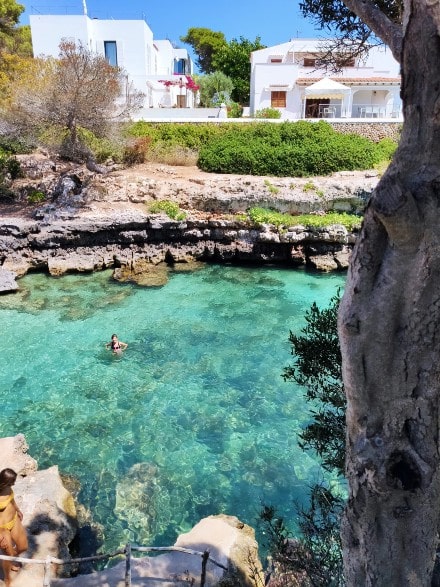 Aunque conducir un barco sin licencia es realmente sencillo, hay que tener en cuenta que va despacio (un punto también a favor de nuestra seguridad) y que son muchas cosas que ver. Imprescindibles en mi opinión, Son Saura y Turqueta; y una zona que te recomiendan especialmente aunque no es una playa específica. Está pasado el Faro de Artrutx y se ve fácilmente porque está llena de barcos. Se conoce como la ‘La Cueva de los Gorriones’ y es una auténtica piscina natural de aguas prístinas.