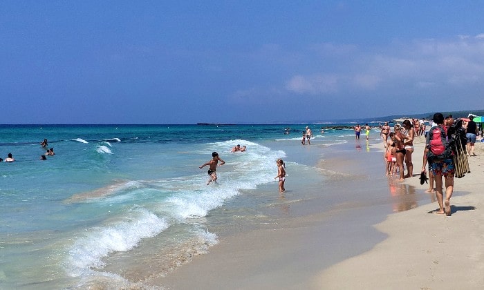 En este caso, el parking es grande y está cerca de la playa, dando acceso a la más larga de la isla; unos tres kilómetros. Por eso, Son Bou fue mi playa predilecta en el sur. Y por su agua, cristalina y puro azul cielo. El típico paisaje que yo miro una y otra vez; y del que aún así, soy incapaz de apartar la mirada. ¡Es hipnótico!