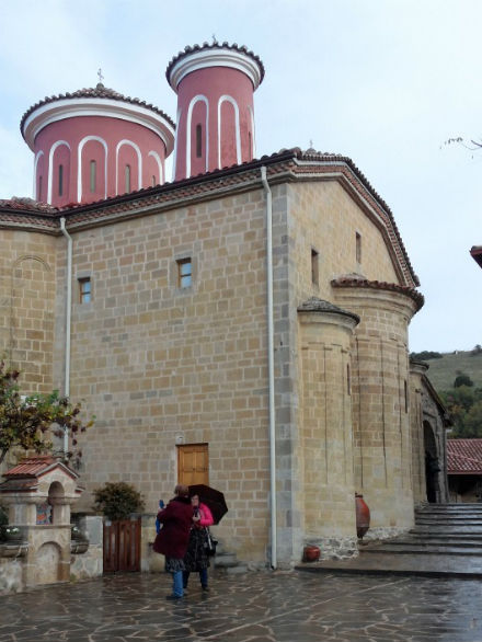 Eso sí: visitado uno, visitados todos. Porque si son algo distintos en su ubicación, tamaño y arquitectura, no dejan de ser todos ellos santuarios ortodoxos de filiación grecobizantina, con los mismos ritos, iglesias, estancias y servicios, donde se exige respeto, silencio y recato (a las mujeres se les proporcionan largas sobrefaldas al respecto). Nosotros elegimos dos. El de Varlaam o de Todos los Santos y el de Roussanou o de Santa Bárbara. Ambos macizas edificaciones en piedra, ladrillo y madera sobre cimas panorámicas del conjunto aéreo y del valle, con iglesias repletas de bellos y valiosos iconos, pinturas y libros, donde los fieles se distinguen de los demás por sus modos rituales y su manera de santiguarse, con escaleras, puentes, corredores, pasadizos, miradores y sótanos, con tienda y museo donde contribuir a la ya holgada hacienda de la iglesia cristiana ortodoxa y, en fin, con algún pope de luenga y negra barba, dentro, ocupado en controlar las eternas obras de mejora del cenobio; y con los consabidos gatos y perros vagabundos, fuera, que pululan por doquier en este viejo país de los Balcanes, especialmente a las puertas de los lugares históricos, en busca de caricias y comida, orgullosos y confiados, como elementos vivos del patrimonio nacional.