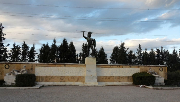 Pero su batalla épica por antonomasia fue la librada por Leónidas, rey de Esparta, y sus Trescientos hoplitas, apoyados por un grupo de aliados griegos, todos masacrados por completo ante el poderosísimo ejército persa pero no sin antes conseguir retrasar el avance de este al sur, hazaña que impidió la conquista de Atenas. Aquí, a la izquierda de la carretera, al pie del montículo ajardinado donde reposan los restos de aquellos héroes, se han levantado dos monumentos funerarios en mármol y bronce: la estatua de Leónidas en pie, con la característica indumentaria militar espartana, sobre un alto muro con esculturas y relieves; y la del dios Eros, como homenaje a los voluntarios tespios (de una ciudad beocia cercana a Tebas) que se inmolaron con los espartanos. La leyenda grabada lo explica todo: “Forastero que has llegado aquí, vuelve a Esparta y di a los espartanos que aquí estamos por haber defendido las leyes de nuestro pueblo”.