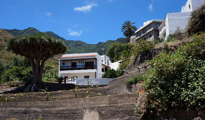 Nuestra primera parada es el pueblo de Taganana, una perfecta composición de terreno pendiente, casas de fachada blanca, dragos y palmeras. Las flores dan color a un pueblo con poca gente en sus calles y apenas un turista al que pedimos una foto. Y quizás sea ese su mayor aliciente: su calma. La plaza del pueblo es coqueta y tiene dos iglesias, una de pequeña dimensión. Tomamos algo y nos volvemos a poner en marcha.
