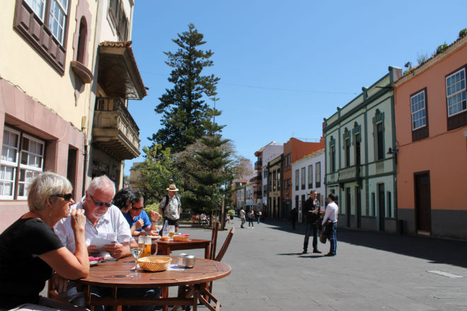 Merece la pena proseguir el paseo a lo largo del puerto, de gran tráfico de mercancías y cruceros. Asoman altivas las dos Torres Gemelas dominando el caserío antes de cruzar la línea del gran barranco que atraviesa la ciudad y entrar en la plaza de Europa, donde se abre el casco antiguo. Dejamos atrás la iglesia de la Concepción, que alberga la cruz monumental que da nombre a la localidad, para entrar en la plaza de España, corazón urbano donde convergen las calles con mayor ambiente.