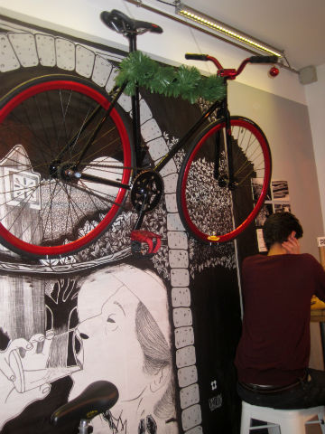 Si bien una de las cosas que más me llamo la atención en el bar era que las porciones de pizza se pueden ajustar al tamaño que uno quiera, lo que me engatusó fue la decoración. Hay varios dibujos en las paredes, bicicletas y colorines que le dan un toque especial.