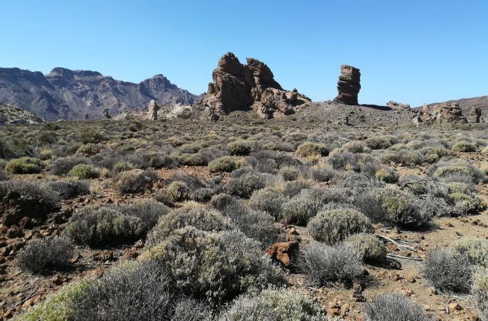 Es esta un producto de las sucesivas erupciones a lo largo del tiempo, responsables de un conjunto de formas y colores de otro mundo: altas elevaciones, tubos, agujas y conos volcánicos, llanuras de escorias, roques y coladas y, en medio, como un rey en su trono, la imponente cima de la isla y de todo el país: El Teide, uno de los mayores volcanes del mundo, aún vivito y coleando, dominando un inabarcable horizonte de tierra y agua desde sus casi cuatro quilómetros de altitud.