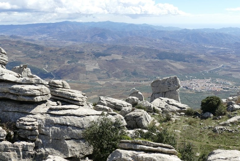 Al noreste de Antequera se encuentran los Dólmenes. Enclavados en las afueras de la ciudad, son tres los principales y se accede a ellos por la carretera vieja de Málaga, en coche o en el autobús urbano. Son túmulos funerarios (el actual cementerio antequerano, por cierto, está pegado a ellos), a modo de montículos redondeados y cubiertos de hierba, que han estado ahí durante varios milenios desde los tiempos neolíticos. Conforman un paisaje histórico que se complementa con el paisaje natural de la Peña de los Enamorados, un peñón calizo donde se han hallado antiguas pinturas rupestres, y el de la sierra del Torcal, con abundantes cuevas de asentamiento troglodita.paisaje-antequera
