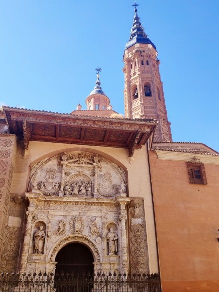 Tras pasar por esta zona, me encaminé antes de nada a Colegiata de Santa María la Mayor, quizás el monumento más conocido de Calatayud. Fue construida sobre una antigua mezquita en el año 1120 y sin duda lo más bonito es su portada-retablo. Su representación del mudéjar aragonés le ha valido el reconocimiento como Patrimonio de la Humanidad por la Unesco.