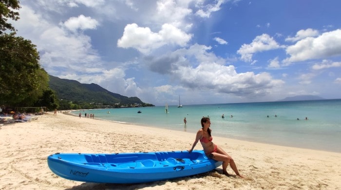 Nosotros la conocimos al inicio y final de viaje, siendo un poco atropellado el descubrimiento de este interesantísimo territorio. En los primeros días, de hecho, nos quedamos todo el rato en la misma playa y nuestro hotel, ya que veníamos cansados y necesitábamos parar. Pero no imagino un mejor lugar para hacerlo. La playa Beau Vallon Beach es un arenal amplio, con playitas cercanas que surcar con un kayak, aguas ideales para hacer snorkel, paisaje exuberante y servicios suficientes (hay zonas de Seychelles más abandonadas) para vivir unos días de relax total.