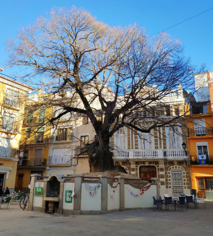 Comenzamos, como no podía ser de otra manera, en la plaza central del pueblo; allí donde un habitante de 383 años extiende sus raíces por el terreno y se mantiene aún erguido e imponente.