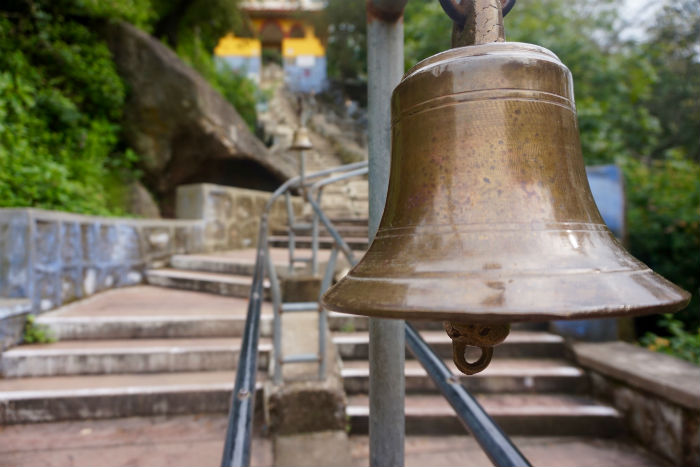 Tras 350 escalones y muchas campanas por el camino, llegamos a este templo, encerrado entre grandes rocas. El tramo final es parcialmente interior –casi como una especie cueva-, por lo que nos agachamos y pasamos por el lugar de oración. No sé si es por el silencio que se respira –cosa rara en la India-, o porque tiene mucha afluencia de gente local y poco turismo pero este lugar sí me transmite ese halo de espiritualidad que no siempre alcanzo a sentir en los templos, aunque por supuesto la haya en la misma medida.