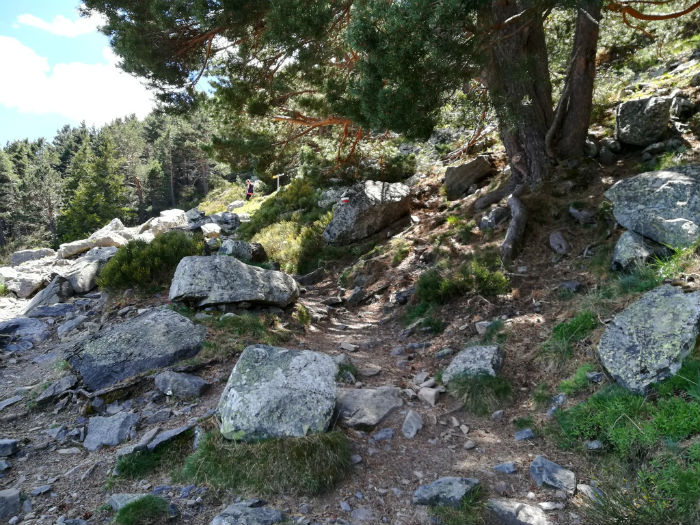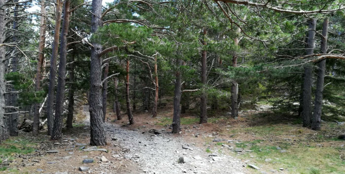 Comienza la ascensión. Mochila al hombro con todos los pertrechos necesarios: agua, comida, ropa y demás. Día fresco y algo nublado, ideal para caminar. Entramos en el Pinar, en los dominios del bosque, frondoso y fascinante. El camino, pedregoso pero cómodo, zigzaguea a través de la masa forestal, que muestra su precioso ropaje primaveral, toda silencio y aire purísimo, y permite, desde algunos recodos abiertos a la ladera como balcones naturales, contemplar a vista de pájaro los pueblos que hemos dejado atrás y otros que salpican la vasta llanura de abajo, todo empequeñecido como una panorámica en miniatura que deja entrever, al fondo nuboso, la alargada cadena de cumbres pirenaicas. Con suerte, tampoco será difícil toparse con algún corzo distraído y saltarín.