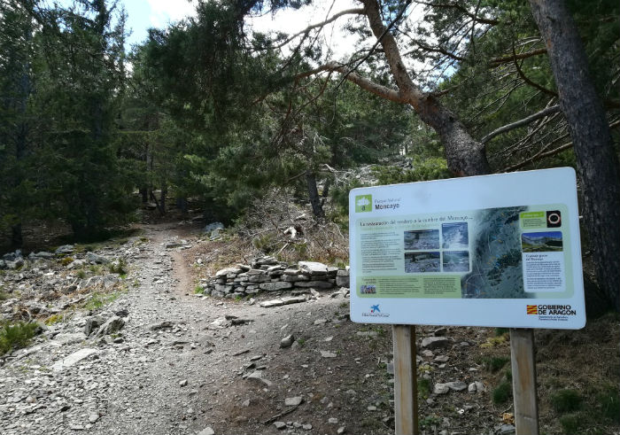 Al salir de los últimos pinares, el pico sagrado se deja ver ya en lo alto. Entre él y nosotros, el extenso cucharón glaciar de San Miguel, de fuertes pendientes, donde solo convive el aromático matorral de montaña con las morrenas arrastradas y acumuladas por el tiempo y los hielos, y con los buitres leonados y otras rapaces que sobrevuelan nuestras cabezas.