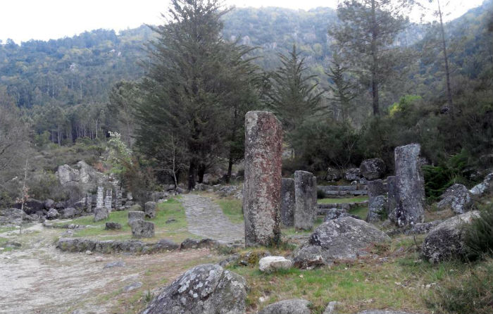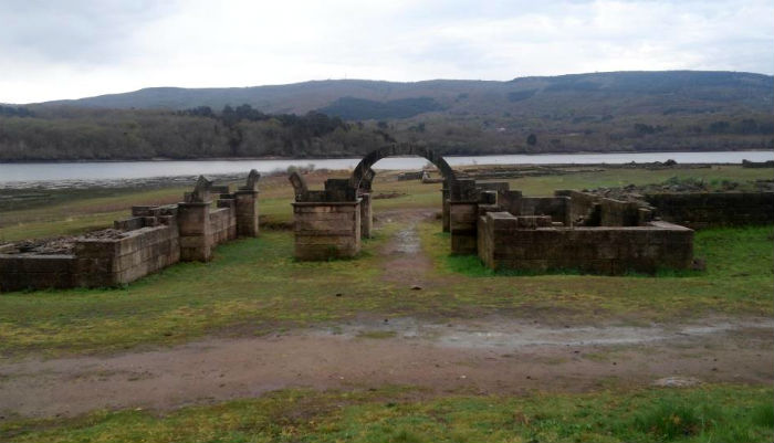 Volviendo al embalse, en fin, nos encontramos de nuevo con Roma. Bajando al agua, en Portoquintela, y dejando a la derecha una playa fluvial bien acondicionada, de verde y picnic, nos encontramos con el Centro de Interpretación de la Vía Nova-Aqvis Qverqvennis, donde podemos recrearnos con toda la información sobre esa larga calzada romana y conocer los hallazgos arqueológicos descubiertos en las excavaciones de este último yacimiento, abierto algo más allá del pequeño museo. Hay que dejar el coche y seguir a pie bordeando el embalse, entre el agua y la sombra boscosa de los robles que le dan nombre al lugar. Se trata de un campamento romano reconstruido en planta con los restos de piedra conservados, donde se asentaba un destacamento militar para control y vigilancia de la carretera. Foso y muralla se abren en varias puertas de acceso a las dependencias interiores: cuartel central, barracones de mandos y tropa, dormitorios y hogar, hornos, establos y granero, baños y desagües, foro y templo, administración y armería.