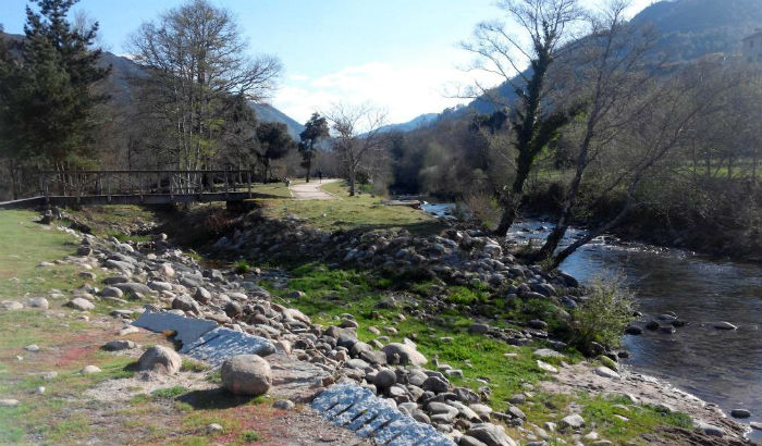 La mayor, construida a modo de piscina, se sitúa sobre una bonita zona verde acondicionada cerca del río; la otra, más pequeña y natural, es un charco grande cerrado con piedras sobre el mismo cauce. Ambas muy frecuentadas por vecinos portugueses, bien pertrechados de indumentaria y útiles playeros. Subiendo paralela a las aguas del río, se ha abierto también una preciosa senda peatonal, arbolada y sombría, llana y cómoda, con regreso optativo por la zona boscosa, no menos bonita, que termina casi a las puertas del recinto termal, un paseo que hace las delicias del visitante.