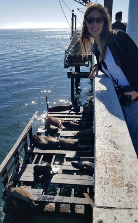 Es una ciudad pequeña -de unos 50.000 habitantes- y acogedora, con un amplísimo paseo de cara al mar y el típico muelle cargado de ambiente y vida. El Santa Cruz Wharf. Allí fuimos sorprendidos por el ruido hecho por los lobos marinos que se cobijan en las maderas del viejo embarcadero. Y estuvimos un buen rato entretenidos viéndolos. Además, a uno de los extremos del recorrido marítimo hay también un parque de atracciones que tanto recuerda a su compañera de Estado, Santa Mónica.muelle-santa-cruzsanta-cruz2