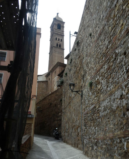 Cruzamos el río para subir al casco antiguo, ese “laberinto de callejuelas empedradas” que G. A. Bécquer así describió como asiduo visitante durante sus estancias en la zona, donde intentaba curarse de su enfermedad respiratoria con las aguas cálidas de las termas de Fitero y con los aires purísimos del Moncayo. Y así es, en efecto. Una intrincada maraña de estrechas calles y callizos que suben, bajan, rodean, entran y salen por pasadizos, arcos, escaleras y plazas, repletas de nobles palacetes, casas tradicionales y algún que otro edificio en ruinas o en restauración, muestra significativa del arte mudéjar.