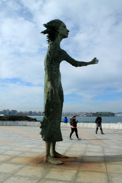 Se trata del Monumento a la Madre del Emigrante, en homenaje a todos aquellos que tuvieron que dejar Asturias y ha sido rebautizada por la sabiduría popular como “la lloca del Rinconín” (en castellano, la loca…). Parece que la gente ha visto en esta señora con la mano en alto en señal de despedida algo más que una mujer apenada. Fue la primera obra moderna que se situó en los espacios públicos de la ciudad, lo que dio lugar a un gran debate sobre su belleza e idoneidad. Pero más allá de lo estético, parece que con el tiempo el pueblo gijonés ha conectado (al menos en parte) muy bien con lo que representa esta imagen.
