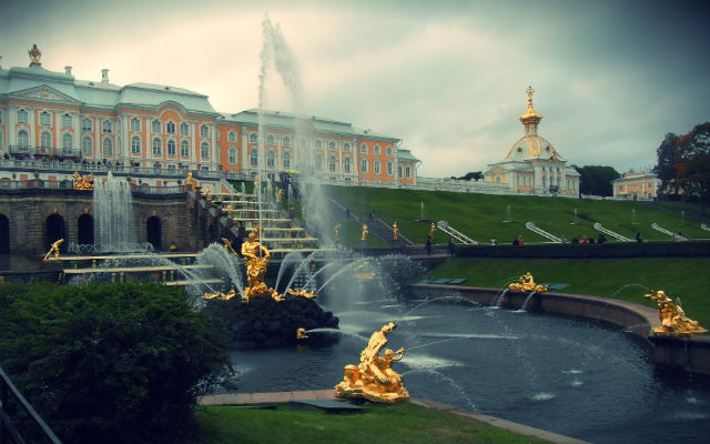 Este día visitamos el Palacio Pedrodvorets, situado a las afueras de la ciudad. Se puede ir en transporte público, pero es tarde y preferimos hacerlo en hidroplano (500 rublos por persona). En poco tiempo estamos en este imponente palacio, cuya entrada cuesta 400 rublos sumados a 250 de la entrada a los jardines.