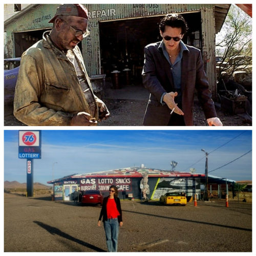 Al entrar, hay un anuncio del campo de tiro que hay en el exterior, cientos de souvenirs y unas chicas encantadoras nos lo confirman: podemos llenar nuestro depósito. Todo sale bien, no hay giro al infierno, aunque todo me recuerde a esta película de los 90. No dejamos de hacernos unas fotos en el decorado exterior -con Rambo y Marilyn como protagonistas- antes de irnos y volver a mirar impresionados el lugar. ¡Es completamente de película!