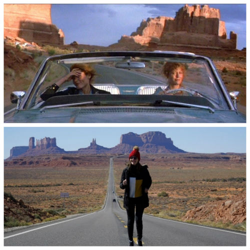 EE.UU. es un territorio tan basto que los viajes por carretera están presentes en su misma esencia. Se me vienen a la mente grandes libros o películas que lo demuestran. Pero me tengo que quedar con una… y no dudo. Esa es Thelma&Louis, que curiosamente no está rodada en esta zona del país, sino en Utah. Concretamente, en Arches & Canyonlands National Parks. Pero es imposible que el paisaje no te recuerde porque al fin y al cabo están bien cerca. Así que en Monument Valley recordé ese peliculón de hace bastantes años pero de total actualidad.
