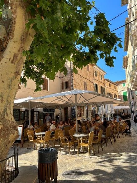 En cuanto a la localidad histórica de Sóller, puedo decir que fue de las paradas que más me gustaron en el viaje. Está dispuesta en torno a la Iglesia de San Bartolomé, un edificio que aúna diferentes estilos (transita del barroco al modernismo) y deja la boca abierta a los viajeros. A partir de este punto, pasear por sus calles empedradas, llenas de tiendas y restaurantes cuidados y tranquilos, es el mejor de los planes. Todo pintado en piedra y colores terrosos, puedo decir que lo añadí en la colección de los pueblos más bonitos de los que he estado en España.